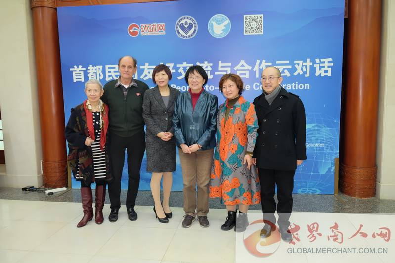 世界商人网创始主编王晓玲与北京市人民友好协会常务副会长张谦(左3),中国工合国际委员会主席柯马凯(左2)等各位同仁和前辈合影(资料)