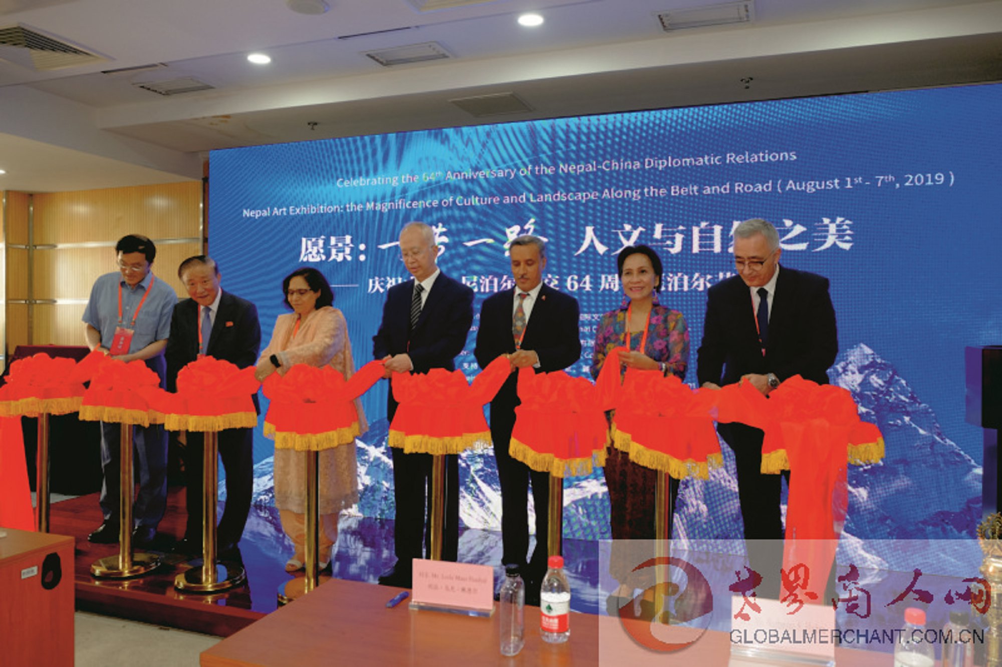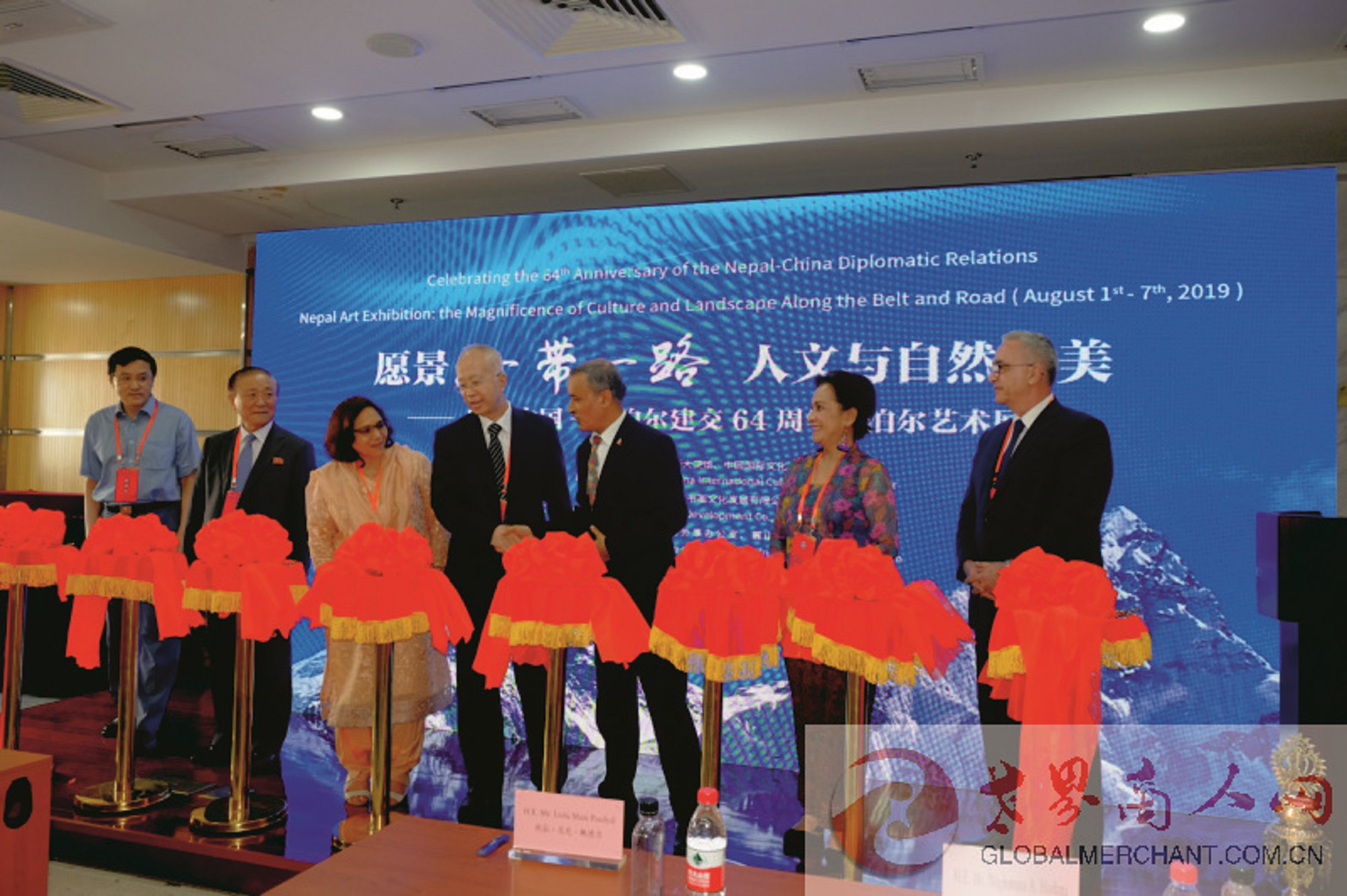 2019年8月1日,以【愿景:“一带一路”人文与自然之美】为主题的庆祝中国-尼泊尔建交64周年尼泊尔艺术展开幕剪彩仪式在北京国际文化交流艺术馆举行。尼泊尔驻华大使利拉·马尼·鲍德尔阁下出席并致辞。中华人民共和国外交部亚洲司朱松波作为中方主宾出席。