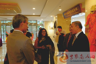尼泊尔驻华大使利拉·马尼·鲍德尔阁下与出席开幕剪彩的各位外交官交流