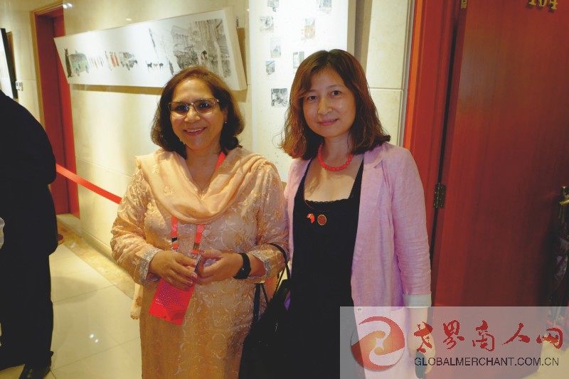 环球云链·世界商人网创始合伙人兼主编王晓玲向巴基斯坦新任驻华大使哈什米女士介绍世界商人网并愉快合影