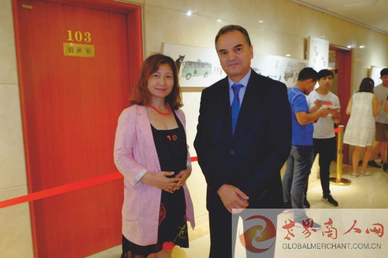 环球云链·世界商人网创始合伙人兼主编王晓玲向土库曼斯坦驻华大使杜尔德耶夫阁下介绍世界商人网并愉快合影