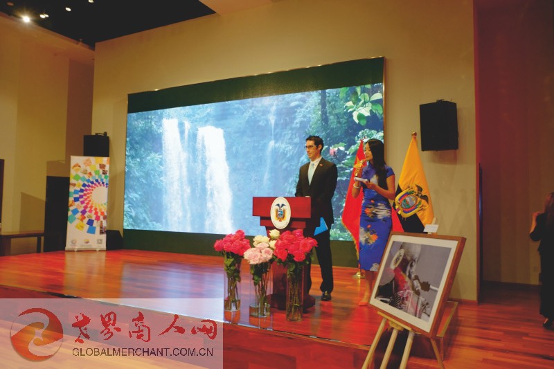 厄瓜多尔驻华使馆商务参赞(左)主持“厄瓜多尔之声”摄影展