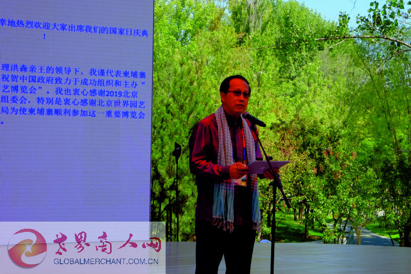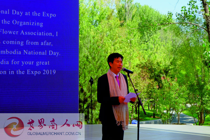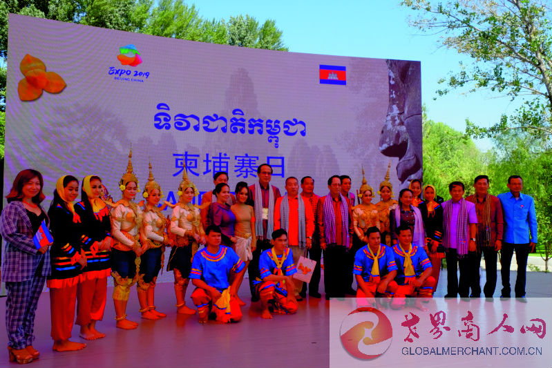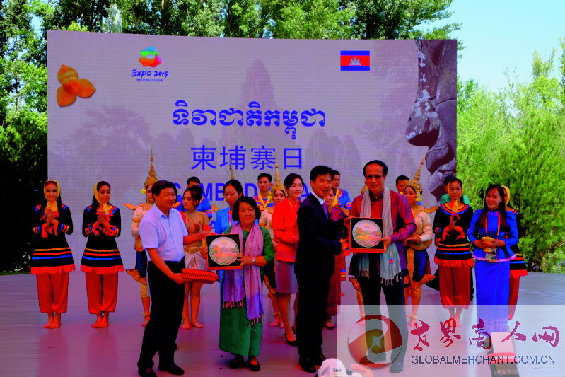 2019年8月31日,北京世园会“柬埔寨国家日”活动在园区妫汭剧场举行。柬埔寨王国商业大臣潘索萨阁下、柬埔寨王国驻华大使凯·西索达女士,柬埔寨驻华使馆商务公使铁弓先生出席,北京世园会政府副总代表张引潮作为中方主宾出席并致贺词。