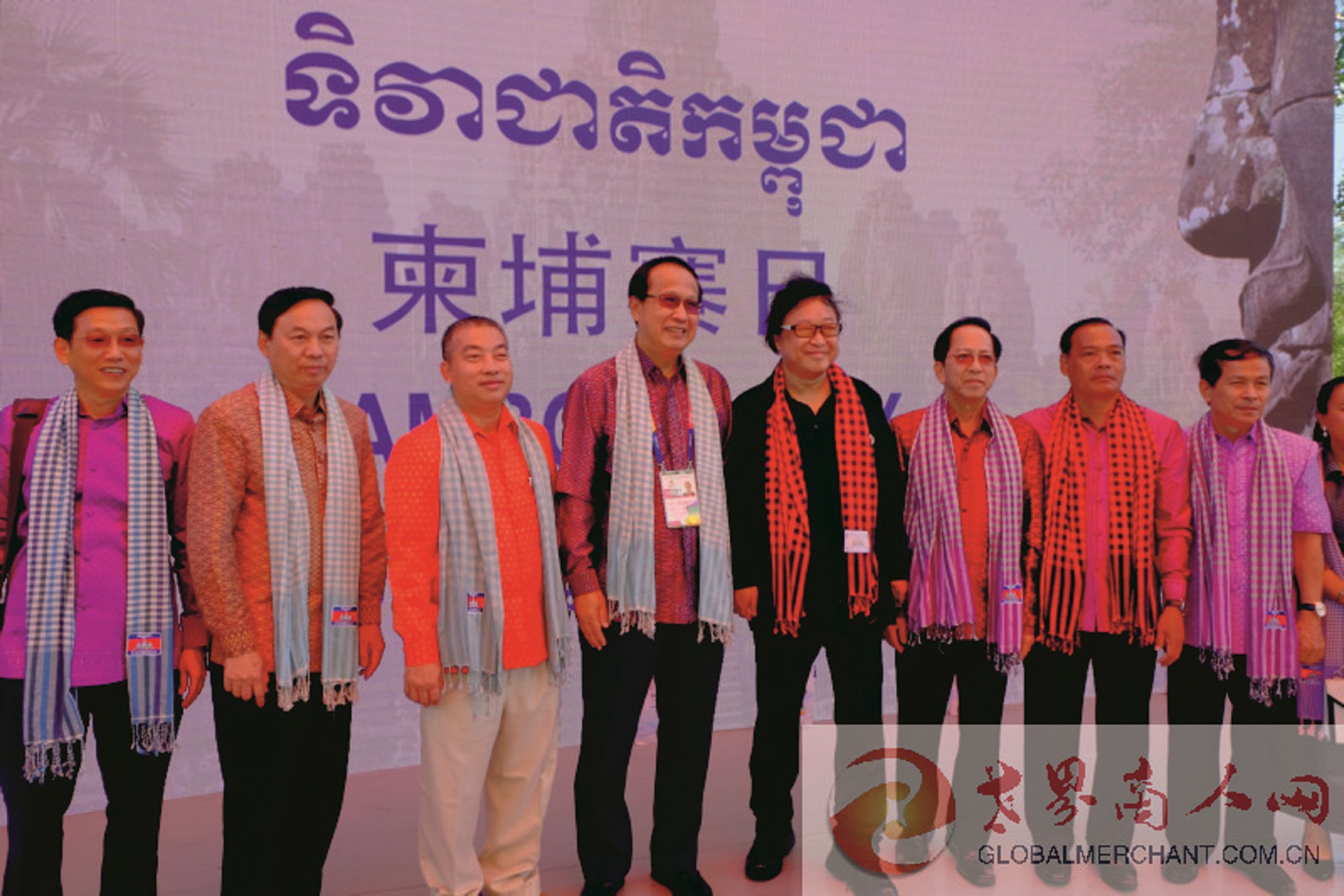环球云链·世界商人网主编王晓玲和演职人员与柬埔寨王国商业大臣潘索萨阁下(右5)合影