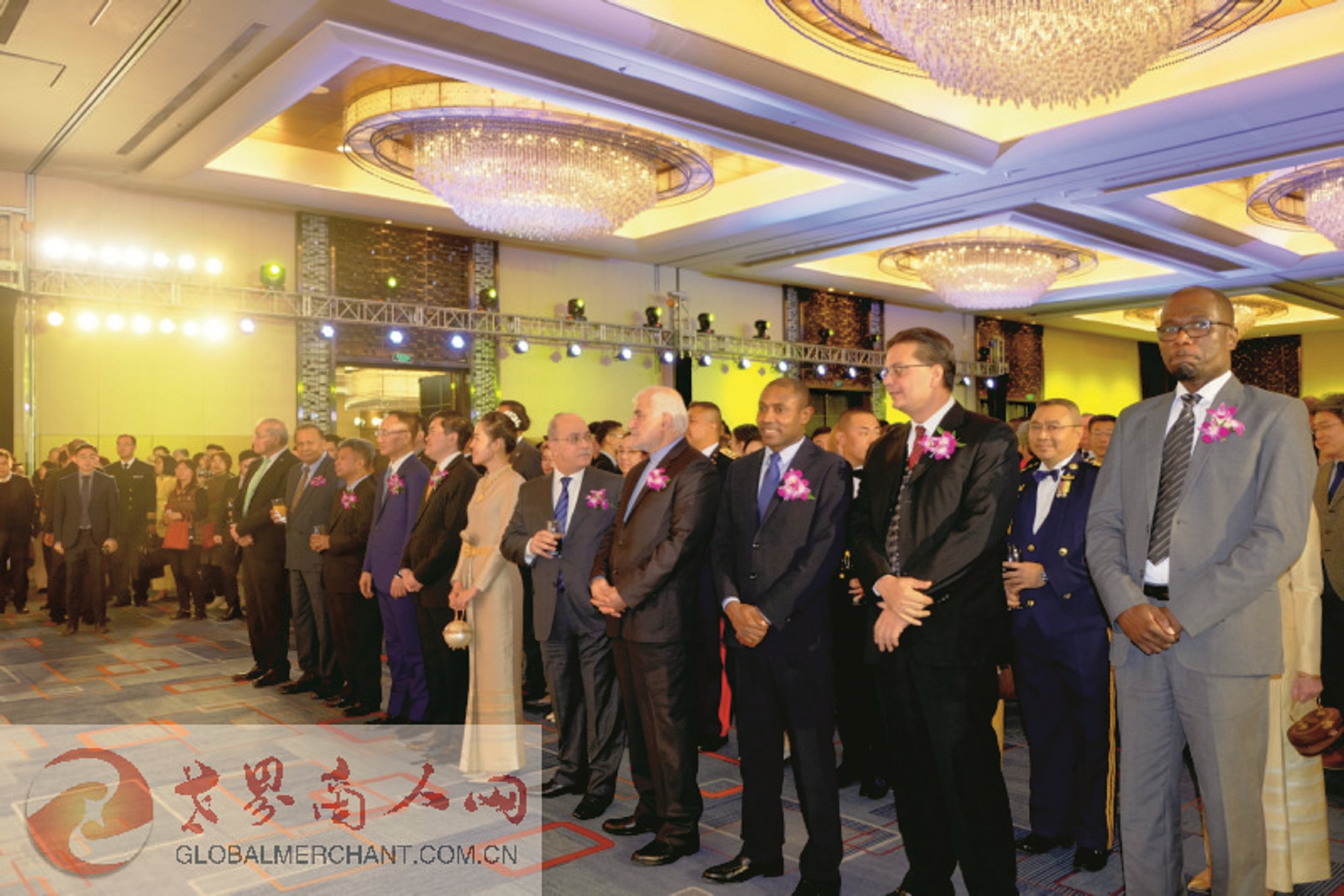 各国驻华外交官夫人和外交官们在泰国国庆节,普密蓬·阿杜德大帝诞辰纪念日暨泰国父亲节招待会合影留念