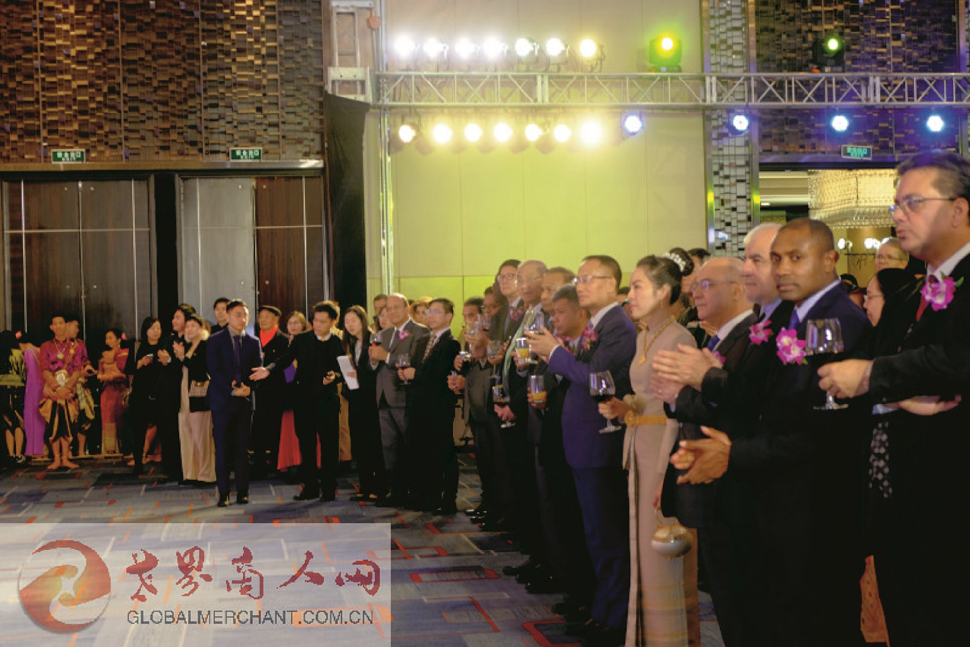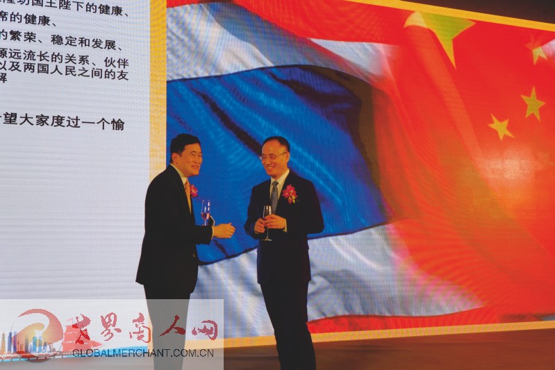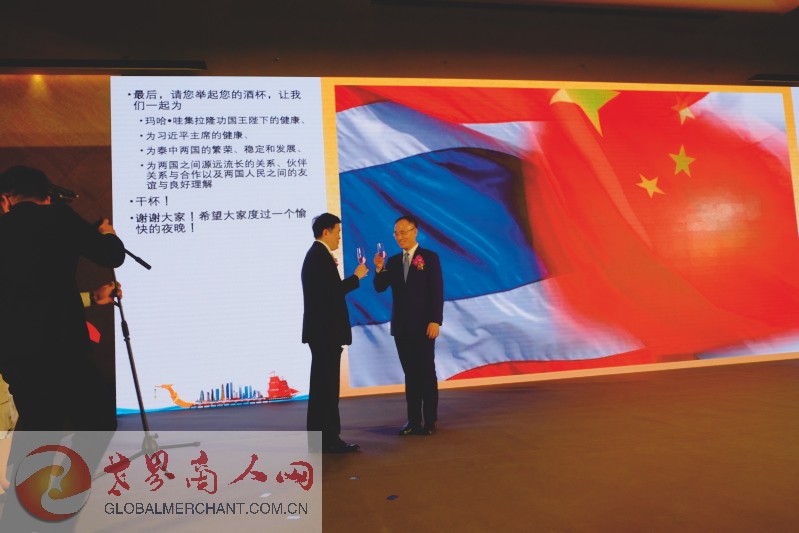 致辞结束,大使阿塔育·习萨目阁下随即举杯邀约中国外交部部长助理陈晓东先生一起上主席台,与来宾朋友们一起举杯共饮,共祝中泰两国友谊万古长青。