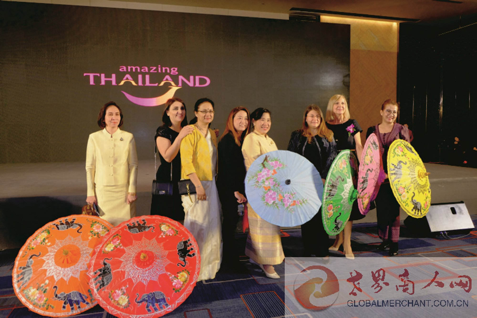 环球云链·世界商人网主编王晓玲向泰国国家旅游局北京办事处处长沛琳女士介绍环球云链国际旅行社及世界商人网并合影留念