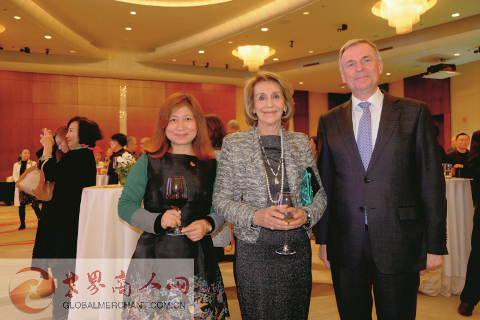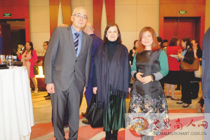 环球云链·世界商人网主编王晓玲与奥地利驻华大使石迪福阁下(右)和端庄文雅的塞浦路斯驻华大使夫人(中)相聚在塞浦路斯独立59周年招待会