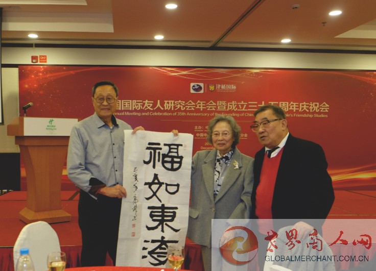 中国国际友人研究会年会暨成立三十五周年庆祝会上向老外交家敬献书法,寄语新年祝福:福如东海!