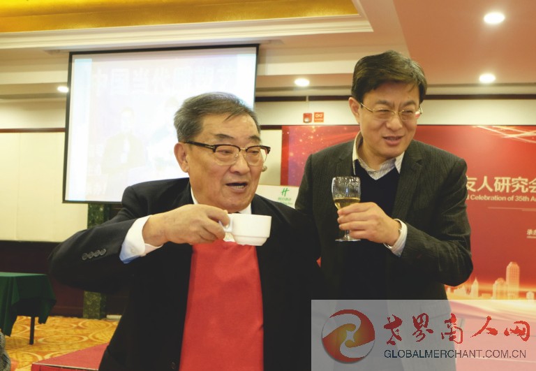 中国国际友人研究会年会暨成立三十五周年庆祝会上向老外交家敬酒