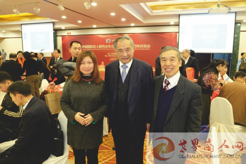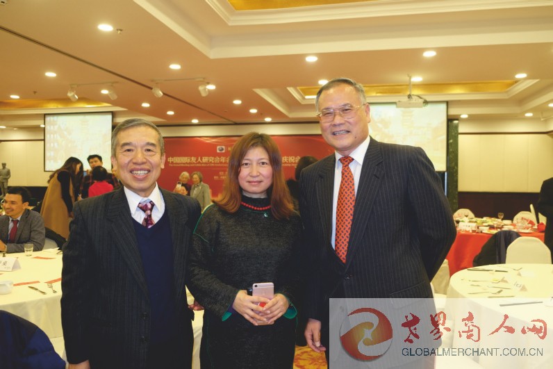 环球云链·世界商人网主编王晓玲与李若弘先生及中国国际友人研究会副秘书长赵福臻先生在中国国际友人研究会年会暨成立三十五周年庆祝会上愉快相聚,欣然合影。李若弘先生是联合国顾问,现任中国世界和平基金会主席。