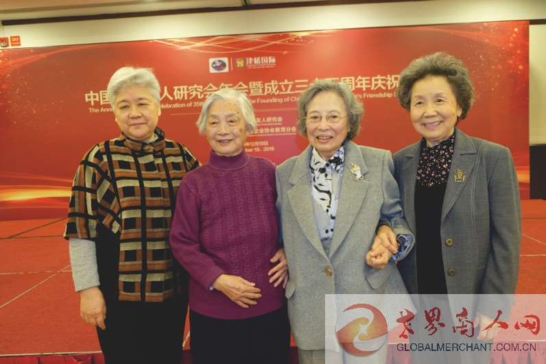中国前外交部长黄华夫人何理良(右2)、原中国侨联副主席唐闻生(左1),国际知名记者伊斯雷尔·爱泼斯坦先生的夫人黄浣碧(左2),原中国妇女联合会书记处书记冯淬女士(右1)等老外交家、老领导合影