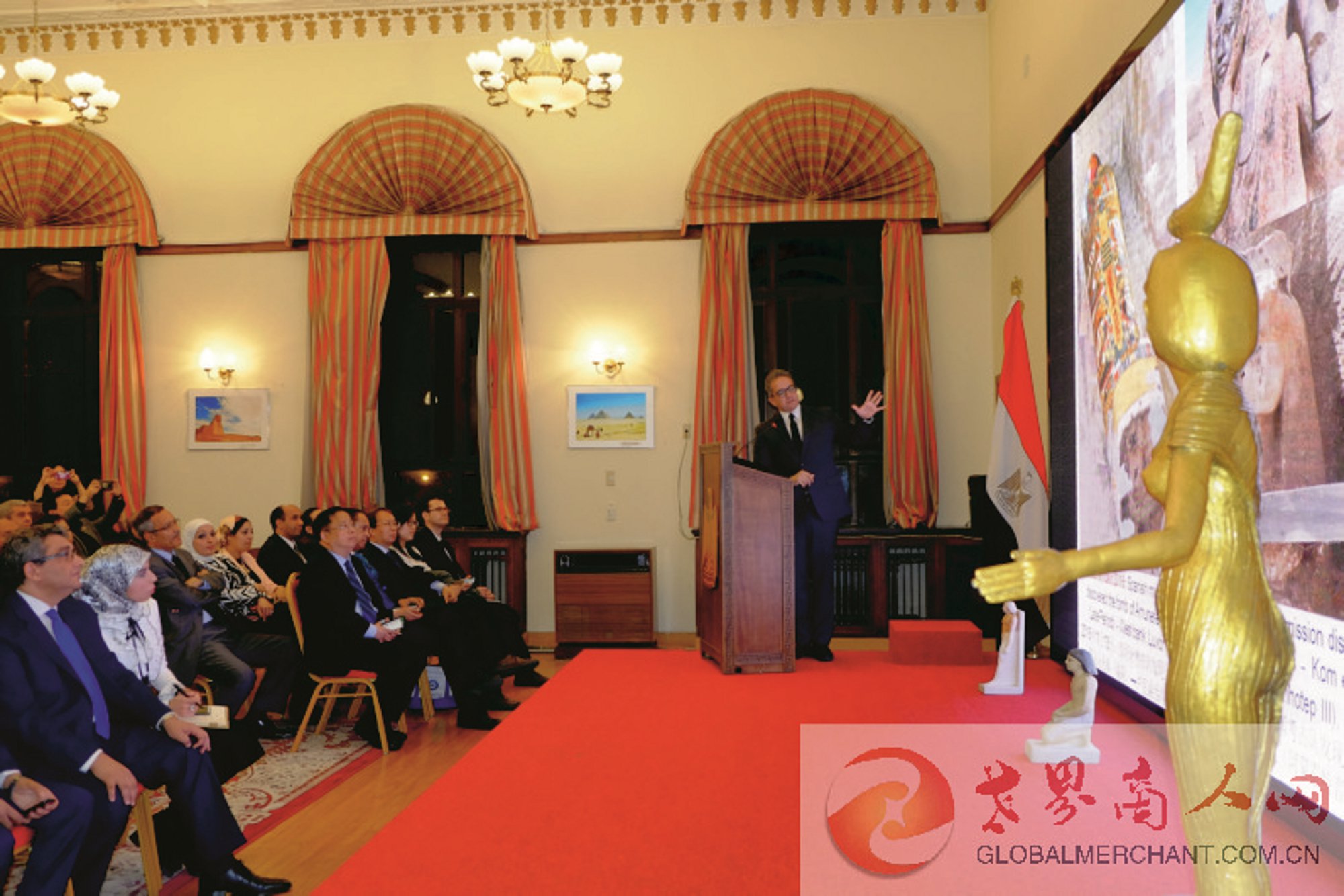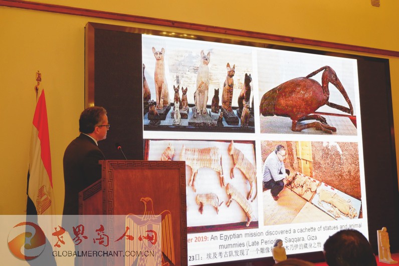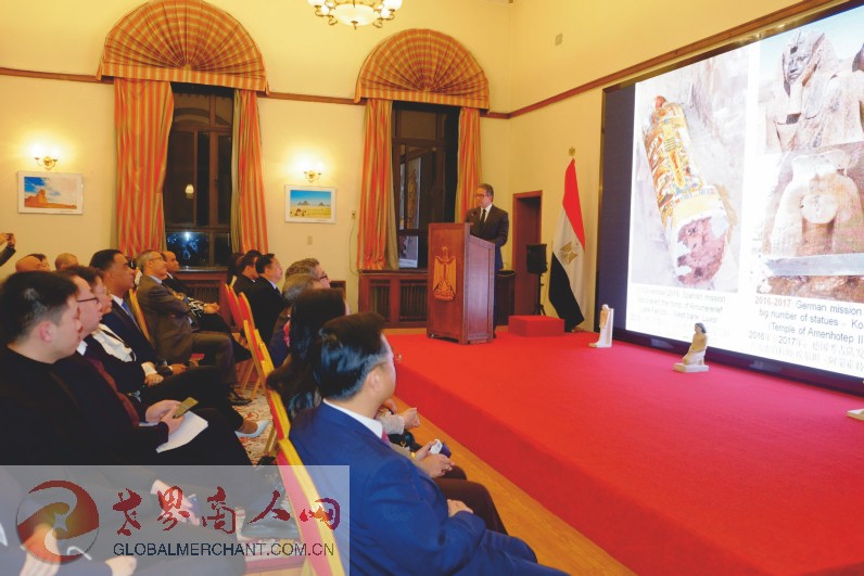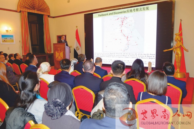 埃及新任驻华大使穆罕默德·巴德里阁下出席并致辞。埃及在华商协会代表、企业家代表、埃及驻华使馆外交官、留学生代表以及中埃两国媒体代表近百人出席聆听部长先生的文物报告。世界商人网应邀出席。