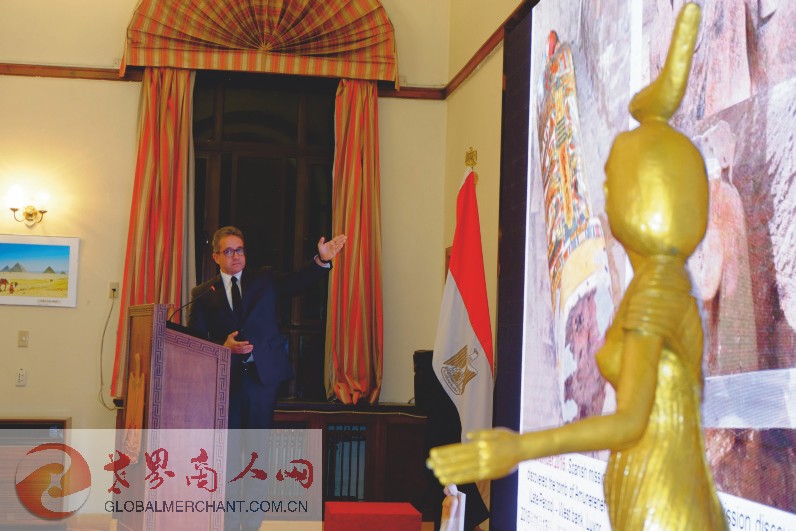 埃及文物部部长哈立德·阿纳尼阁下详细介绍了埃及文物近期的发展、发现