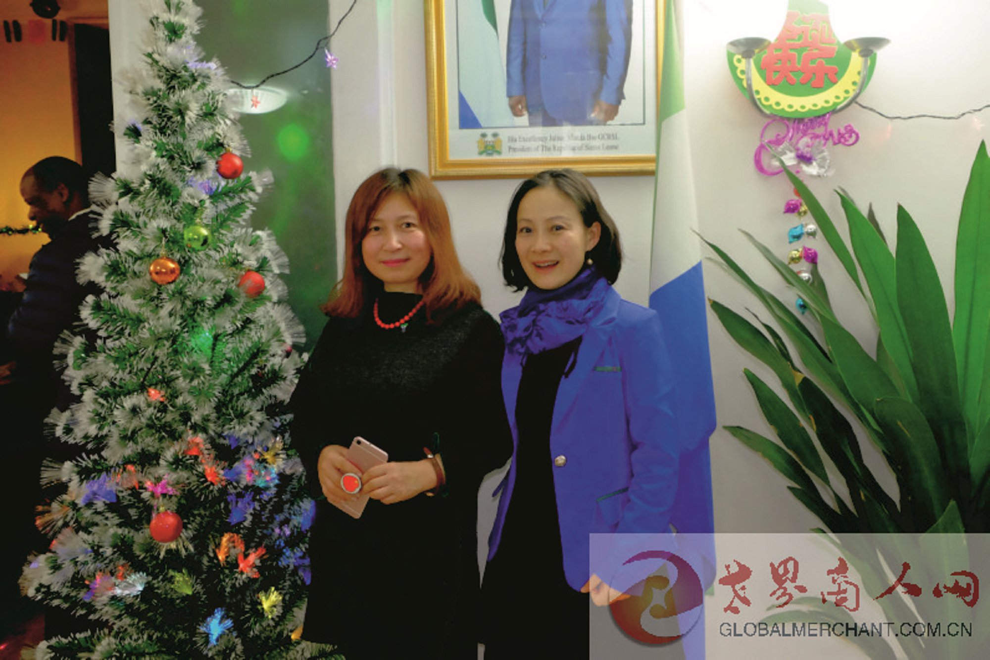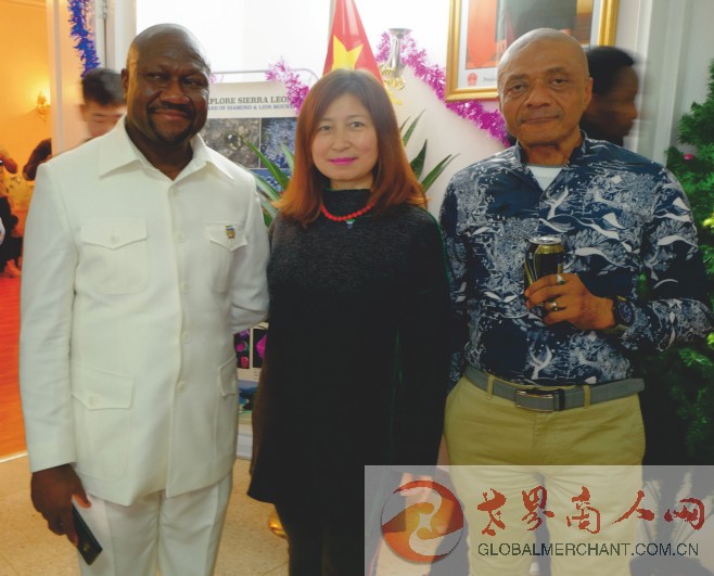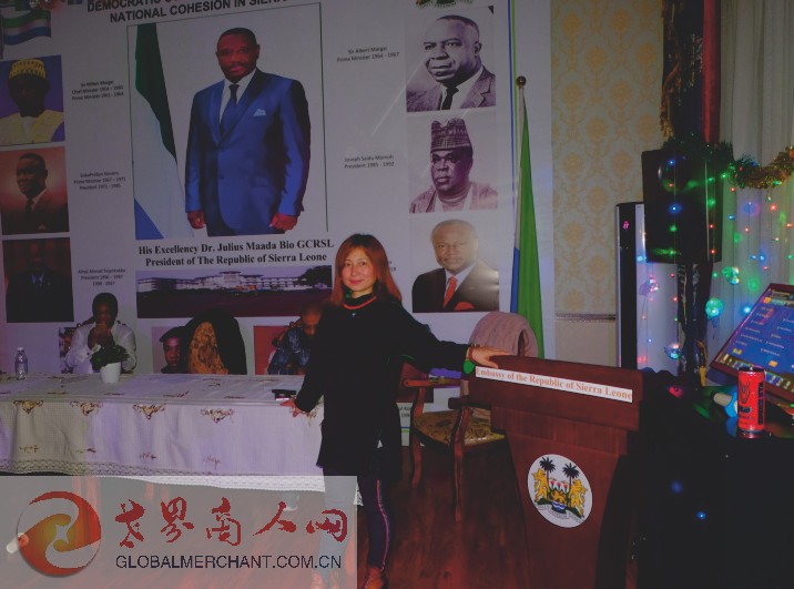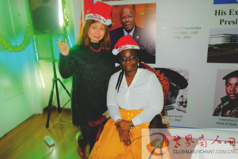 2019年圣诞夜,环球云链·世界商人网主编王晓玲参加塞拉利昂驻华使馆的圣诞舞会