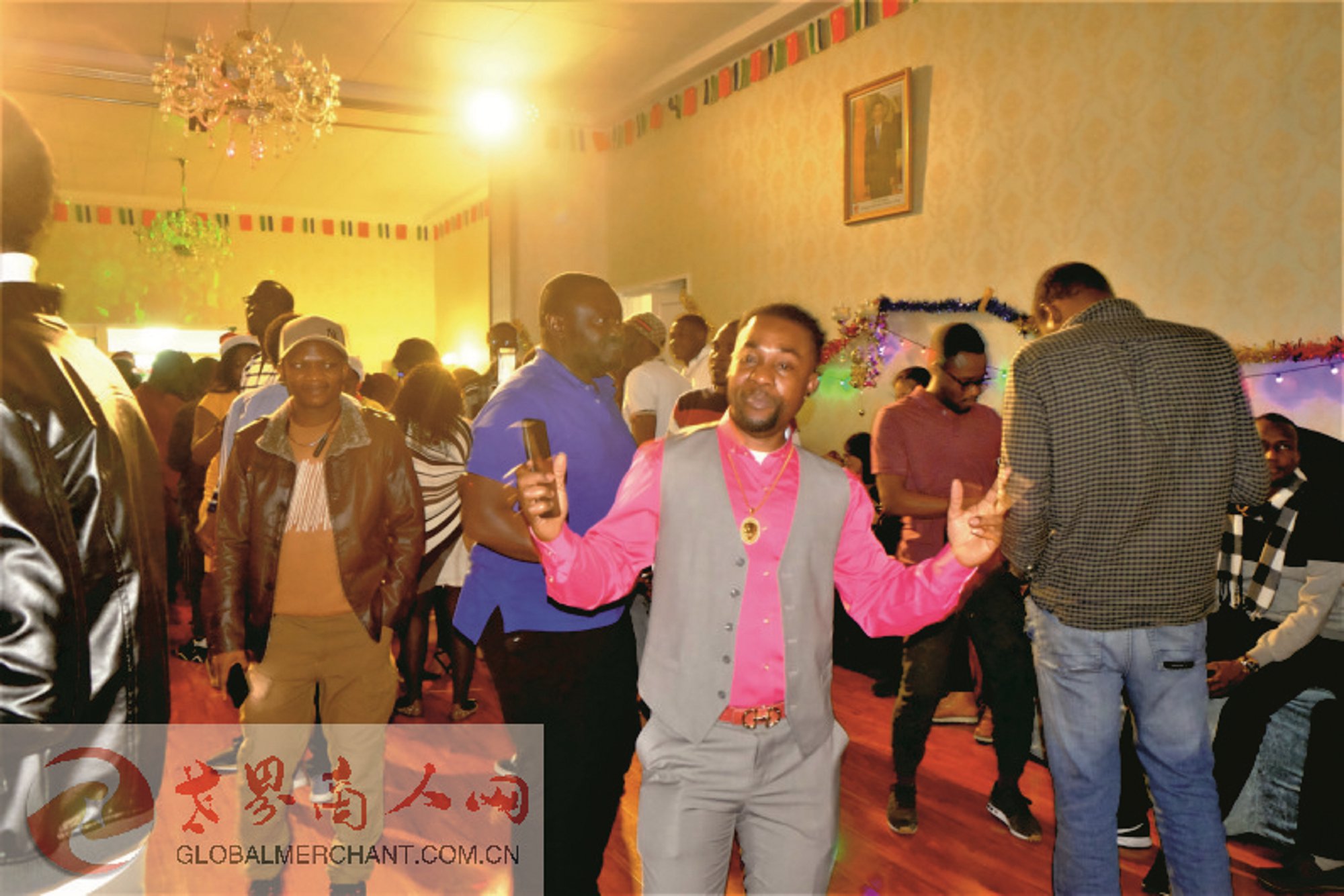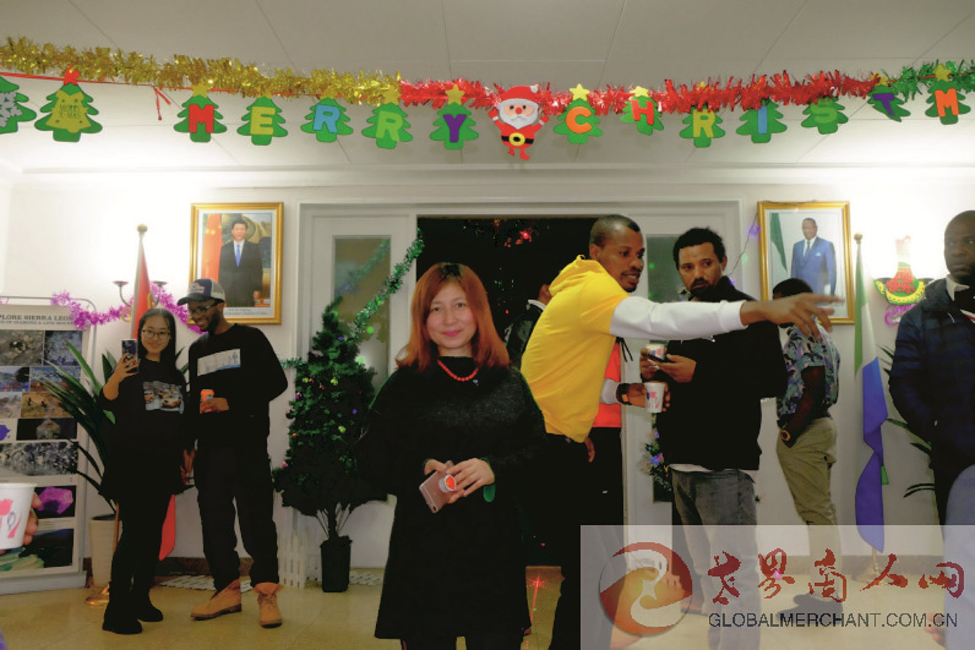 2019年12月25日,圣诞夜,塞拉利昂驻华使馆举办了热闹的舞会聚会:专业的照相POSE配高大上的墙上人物