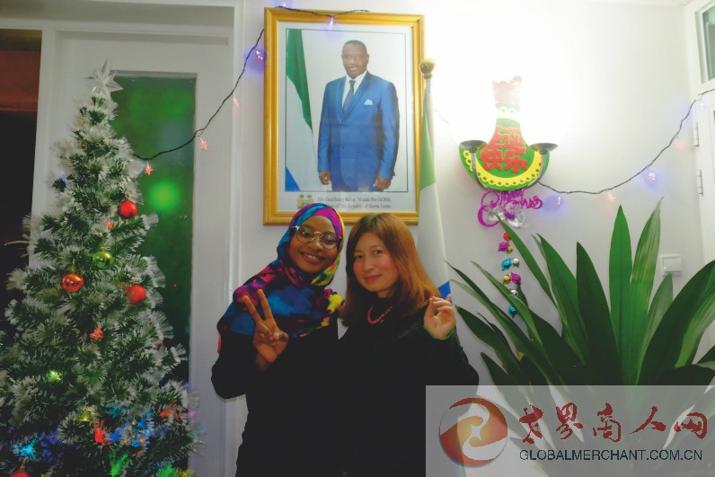 2019年圣诞夜,环球云链·世界商人网主编王晓玲受到塞拉利昂驻华使馆参赞热情款待,这里的舞会温馨热闹