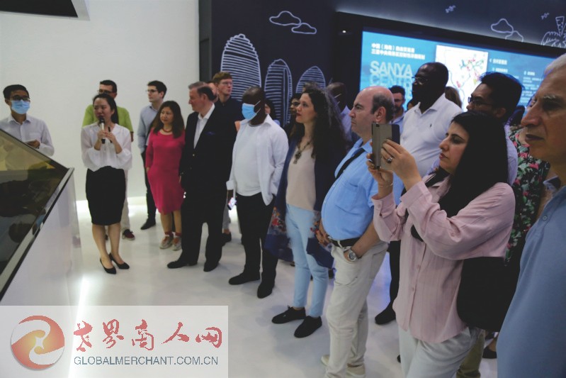 在三亚中央商务区,园区工作人员从园区发展的政策优势、营商环境、产业规划、项目建设、招商引资等角度,向外国使节详细介绍了园区基本情况,并就关注的焦点问题进行专业介绍和专业解答。