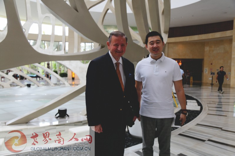 环球云链·世界商人网主编王晓玲与埃及驻华大使穆罕默德·巴德里阁下(中)一起探访三亚,交流合影