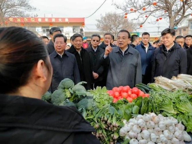 2月7日腊月廿六,李克强来到山西运城,一下飞机直奔盐湖区东郭镇年货市场。