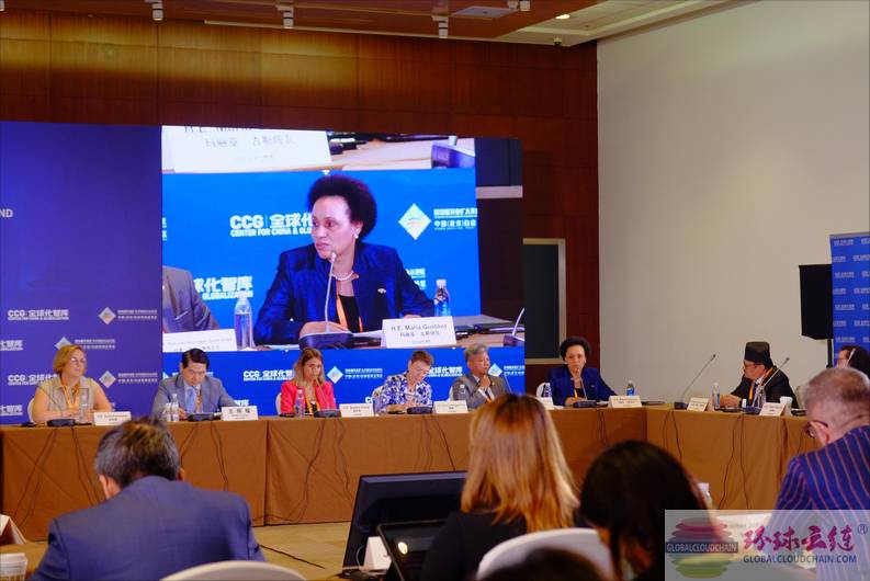 本届论坛举办了三场圆桌论坛。圆桌论坛一以“后疫情时代的全球服务业复兴:治理与合作”为主题。论坛上,非盟驻华大使拉赫曼塔拉·默罕默德·奥斯曼(Rahamtalla M. Osman Elnor),澳大利亚驻华大使傅关汉(Graham Fletcher),比利时驻华使馆代办郝苏菲(Sophie Hottat),芬兰驻华使馆代办高飒丽(Soile Kauranen),德国驻华大使傅融(Patricia Hildegard Flor),马来西亚驻华大使拉惹·拿督·努西尔万(Raja Dato Nushirwan Zainal Abidin),莫桑比克驻华大使玛丽亚?古斯塔瓦(Maria Gustava),尼泊尔驻华大使比什努·普斯卡·施雷斯塔(Bishnu Pukar Shrestha),新西兰驻华大使傅恩莱(Clare Fearnley),秘鲁驻华大使路易斯·克萨达(Luis Quesada)就后疫情时代全球服务业发展与转型等议题展开探讨。该分论坛由CCG理事长、中国国际经济合作学会副会长王辉耀主持。