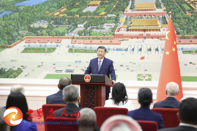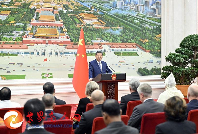 仪式结束后,习近平在北京厅对使节们发表讲话。