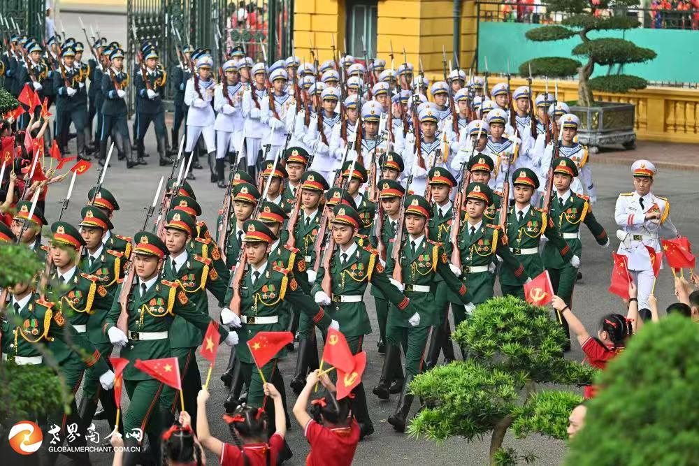 4月14日,中共中央总书记、国家主席习近平抵达河内对越南进行国事访问。当日下午,越共中央总书记苏林为习近平举行隆重欢迎仪式。