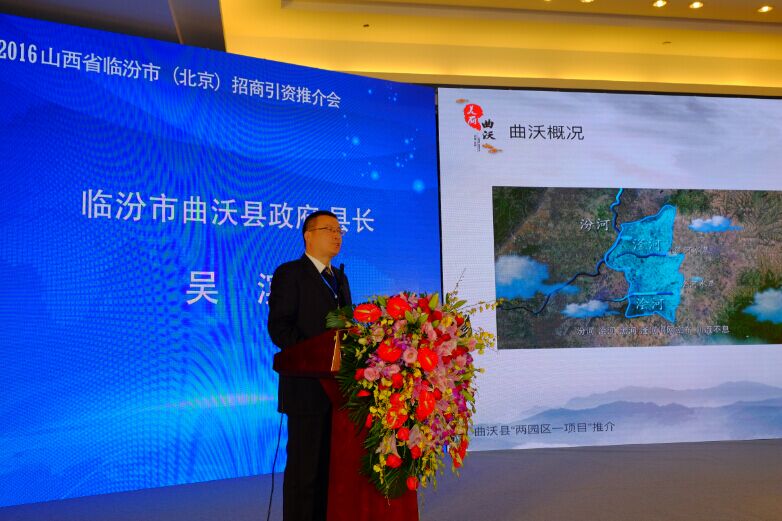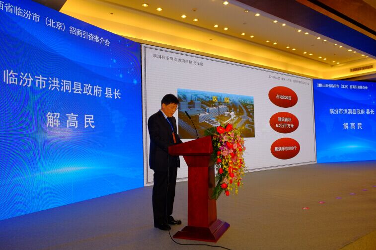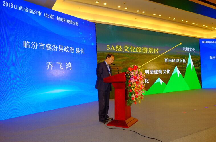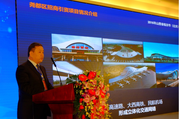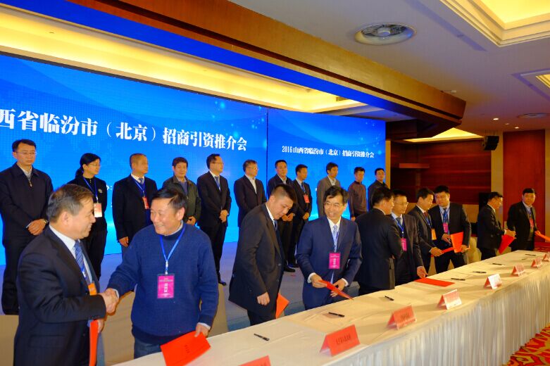 12月5日,2016山西省临汾市招商引资推介会北京举行。中共临汾市委副书记、市长刘予强,临汾市政府副市长王延峰率临汾市委、市政府领导班子及各县领导出席并做项目推介。北京市投资促进局副巡视员张彤出席并致辞。来自北京各大国企、投资机构、各民营大企业主要负责人近600余人受邀参加投资推介会,积极互动交流,达成签约项目几十个,超数百亿元。世界商人网作为国际商务资讯咨询机构也应邀参加。