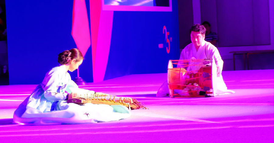 主办方韩国驻华大使馆为受邀前来祝贺的韩中两国嘉宾献上具有韩国地域特色的民间歌舞表演