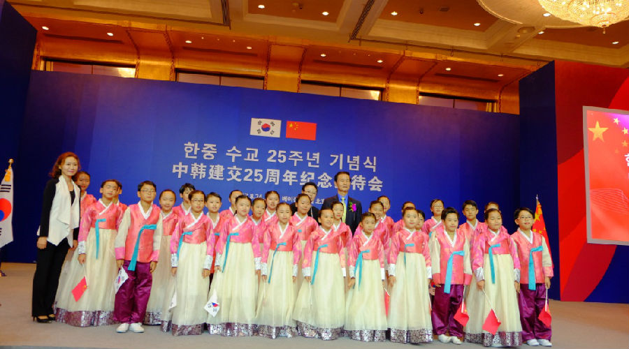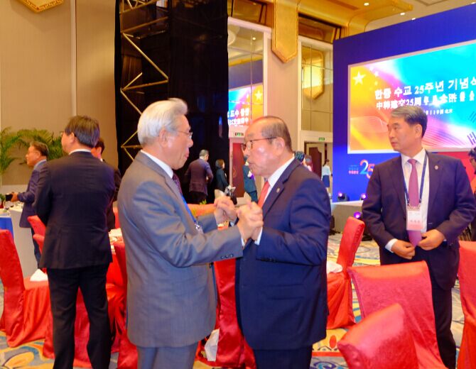 据介绍,25年前的今天,韩中两国政府做出了载入史册的重大抉择,当时这令全世界感到震惊,这是在当时的国际形势下,两国领导人肩负时代使命及远见卓识作出的英明决断。建交以来,两国基于地缘相近,文化与感情想通等特点实现了史无前例的发展。1992年两国建立睦邻友好关系,通过持续的关系发展,在2008年将两国关系提升为战略合作伙伴关系。进而两国在经贸合作领域也实现了飞速发展,去年两国间的贸易额比建交之初增长了30多倍,人员往来规模增加了80倍以上,自2014年起,两国人员往来进入了一千万时代,频繁的交流接触增进了两国间的相互合作和友谊。这对今后两国的关系发展来说是万金不换的宝贵财富。