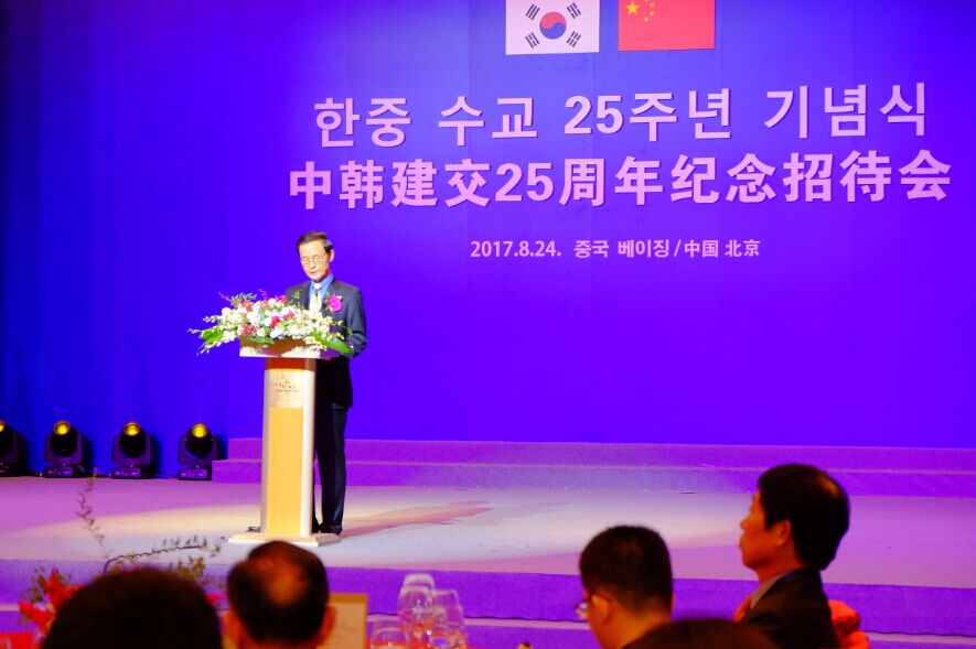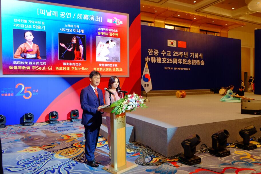 2017年8月24日,中韩建交25周年招待会在北京盛大举行。全国政协副主席万钢代表中方出席并致贺词。韩国驻华大使金章洙阁下,韩国外交部公共关系外交大使Enna Park女士,韩国外交部东北亚局局长郑炳元代表韩方出席。中国外交部孔铉佑部长助理,中国外交部黄海事务大使王晓渡,中联部王亚军部长助理,全国政协外事委员办公室副主任,商务部亚洲司吴政平司长等作为中方主宾出席。