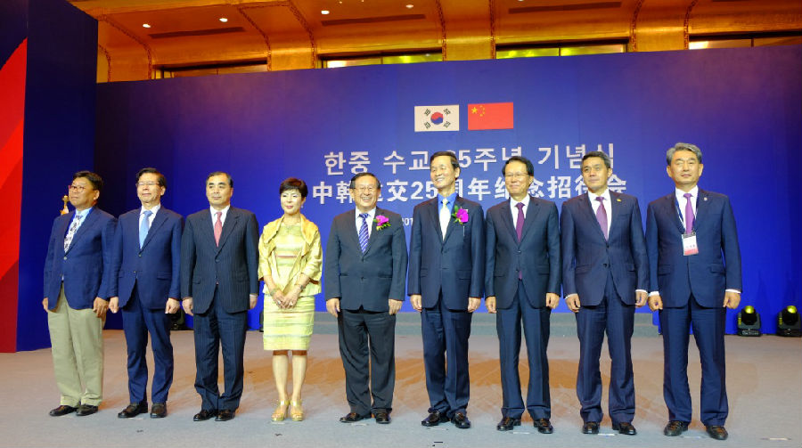 出席中韩建交25周年招待会的中韩两国国家代表合影