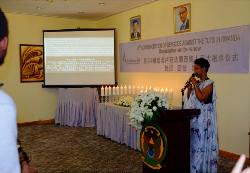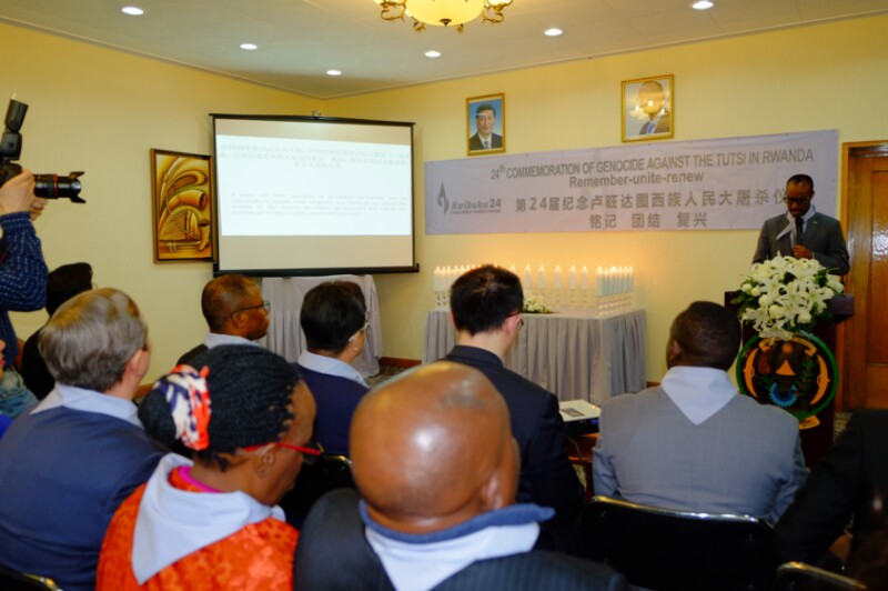 第24届纪念卢旺达图西族人民大屠杀仪式4月7日由卢旺达驻华大使馆成功举办。【铭记、团结、复兴】是历届纪念仪式坚守的理念,那就是反对分裂与屠杀,铭记痛苦与浩劫,坚守团结与复兴。正如卢旺达驻华大使查尔斯·卡勇加阁下强调:“1994年卢旺达图西人大屠杀是国家和人类的悲剧,卢旺达人民要把反对大屠杀的持久战打下去。” 这是一段不能被忘却的历史!