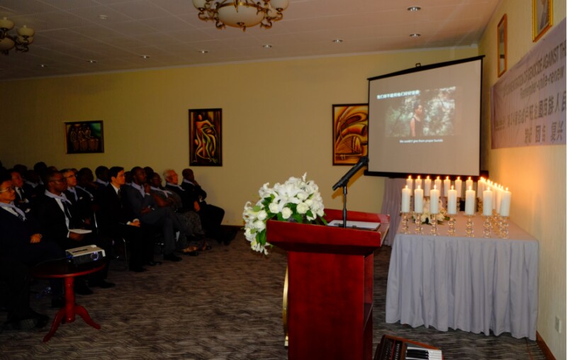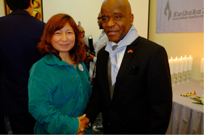 世界商人网董事总经理兼总编王晓玲与肯尼亚驻华大使迈克尔·金扬久伊阁下一起出席第24届纪念卢旺达图西族人民大屠杀仪式