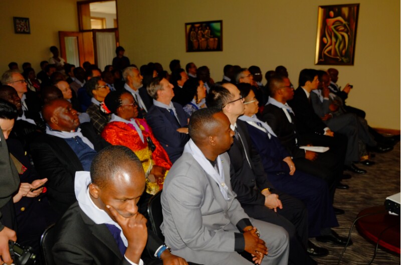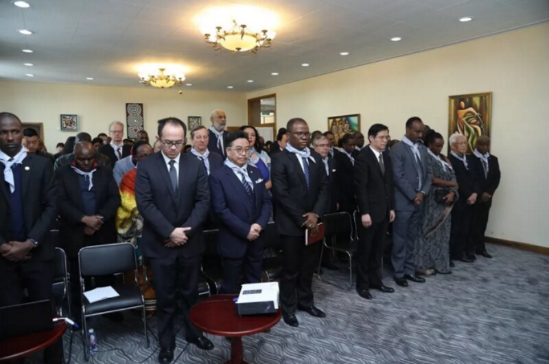 第24届纪念卢旺达图西族人民大屠杀仪式后现场嘉宾与卢旺达驻华大使查尔斯·卡勇加先生合影留念