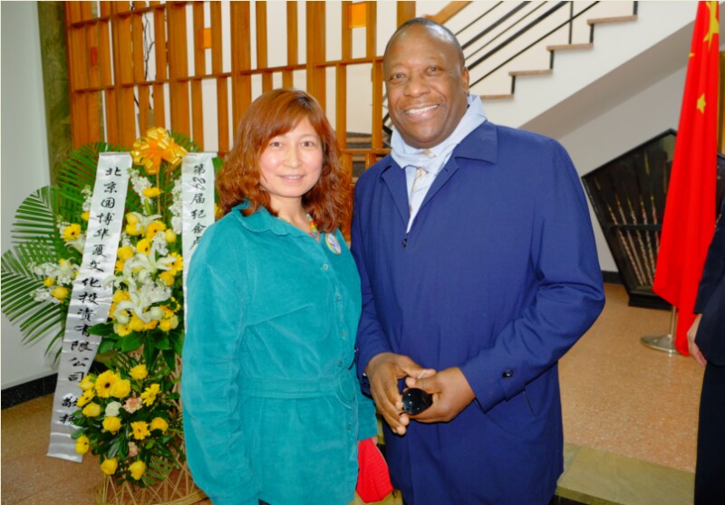 世界商人网董事总经理兼总编王晓玲与格林纳达驻华大使丹尼斯·安托万阁下一起出席第24届纪念卢旺达图西族人民大屠杀仪式