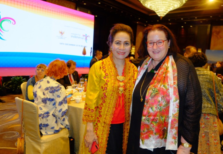 印尼驻华大使夫人(左)与新西兰驻华大使晚宴后合影