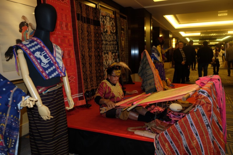印尼大型招待晚宴迎宾厅展示的印尼传统纺织工艺