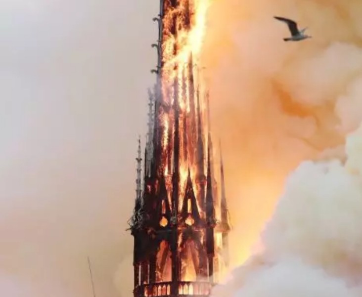 巴黎圣母院被大火吞噬,塔尖倒塌