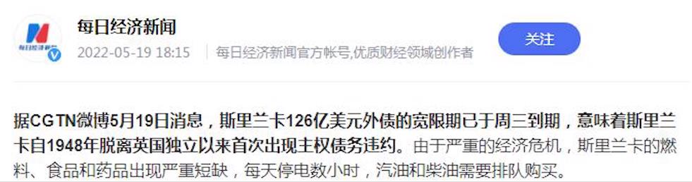 区域商帮 >> 70多年以来首次!斯里兰卡主权债务违约:想要找100万美元都难