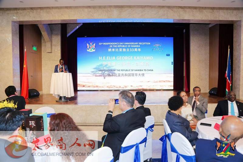 联合国驻华协调员常启德,非洲联盟驻华代表处常驻代表拉赫曼塔拉·奥斯曼,科摩罗驻华大使、塞内加尔驻华大使、卢旺达驻华大使、佛得角驻华大使、南苏丹驻华大使,塞舌尔驻华大使、冈比亚驻华大使、巴勒斯坦驻华大使、圣多美和普林西比驻华大使,加纳驻华大使,马里驻华大使,马拉维驻华大使、索马里驻华大使、喀麦隆驻华大使、坦桑尼亚驻华大使,毛里求斯驻华使馆公使、刚果(金)驻华使馆公使先生,阿里及利亚驻华使馆公使,委内瑞拉驻华使馆公使,俄罗斯驻华使馆科技参赞和各国武官,以及中国企业家代表共两百多人出席此次盛会。环球云链国际旅行社和世界商人网协办了此次纳米比亚第33个独立日庆典招待会。