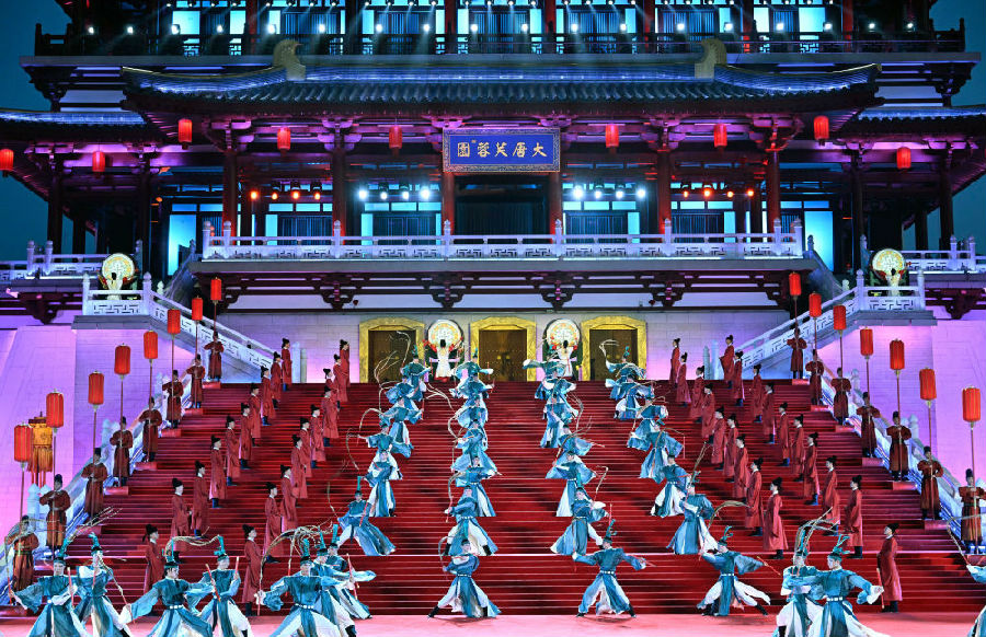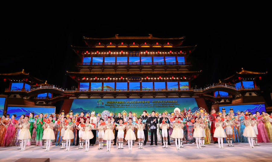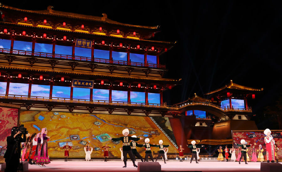 宴会后,习近平夫妇同贵宾们共同观看中国同中亚国家人民文化艺术年暨中国-中亚青年艺术节开幕式演出。