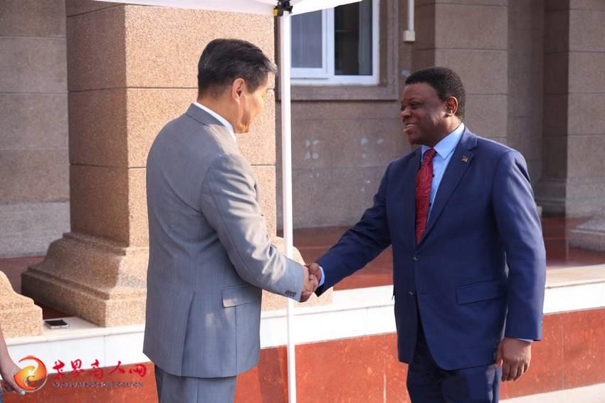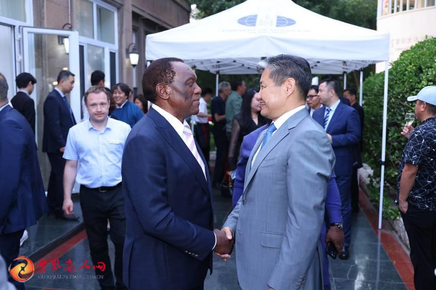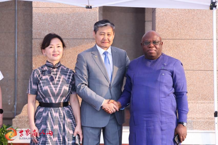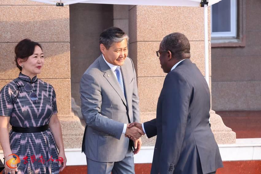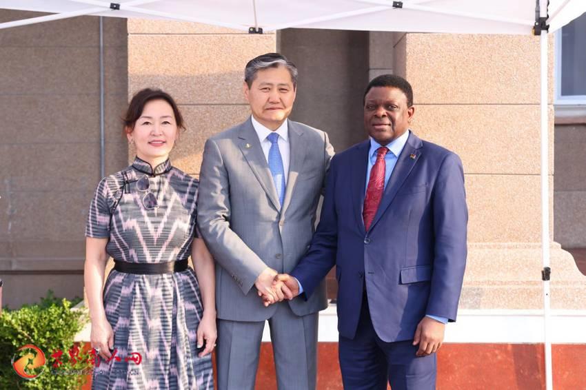 非洲驻华使团长、喀麦隆驻华大使姆巴纳与蒙古国特命全权大使图布辛·巴德尔勒和其夫人琪琪格苏仁合影