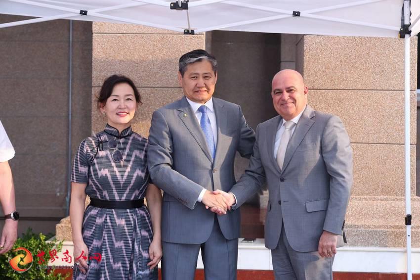 世界生态组织亚洲管理中心办公室主任、世界商人网主编王晓玲与蒙古国特命全权大使图布辛·巴德尔勒和其夫人琪琪格苏仁合影