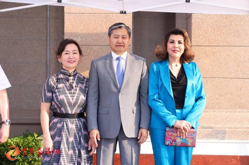 土库曼斯坦驻华大使与蒙古国特命全权大使图布辛·巴德尔勒和其夫人琪琪格苏仁合影