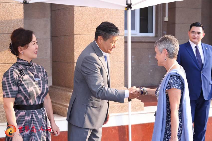 2024年7月3日,庆祝蒙古人民革命胜利103周年、传统那达慕节日招待会在蒙古国驻华大使馆举行。蒙古国特命全权大使图布辛·巴德尔勒和其夫人琪琪格苏仁作为东道主热情招待前来致贺的各位驻华大使和外交官。