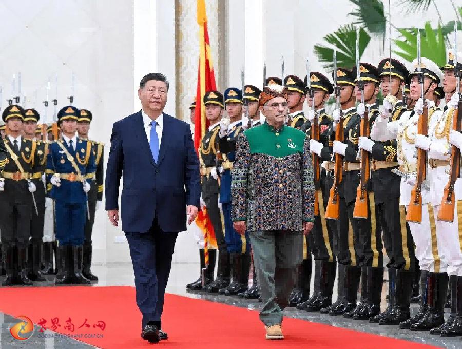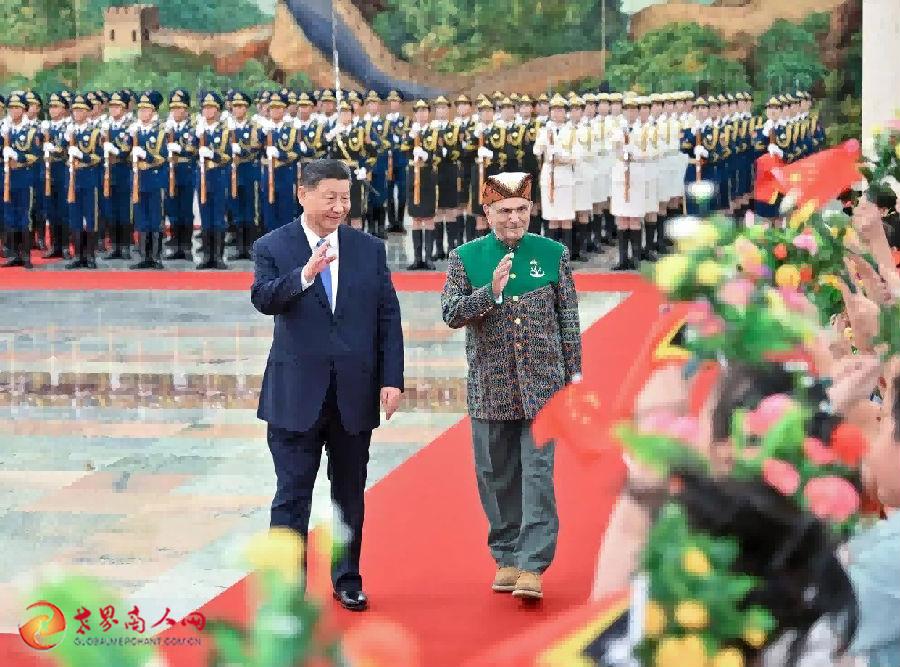 会谈前,习近平在人民大会堂北大厅为奥尔塔举行欢迎仪式。