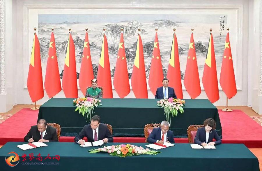 2024年7月29日,在两国元首共同见证下,国家发展改革委主任郑栅洁与东帝汶外交与合作部部长贲迪拓分别代表两国政府共同签署《中华人民共和国政府和东帝汶民主共和国政府关于共同推进“一带一路”建设的合作规划》。