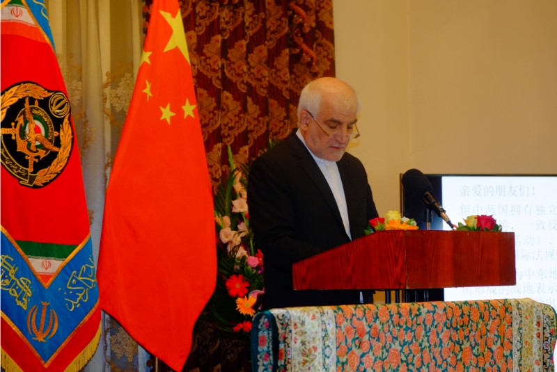 两国庄严的国歌之后,大使克沙维兹·扎德赫阁下首先致辞。他指出,伊中两国拥有独立的外交政策,一致反对针对所有领域的单边主义,反对滥用国际机构和违反联合国宪章的行为,遵守国际法则。大使先生对中东地区由于长期遭受外国干涉所形成的战地表示遗憾,并强烈呼吁为全世界的和平、公正做出贡献。
