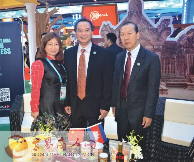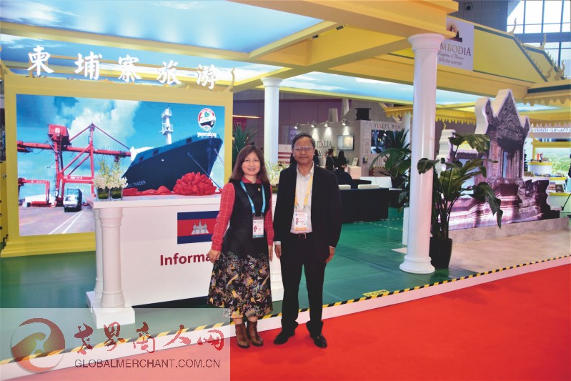 第二届中国国际进口博览会国家展展区内的柬埔寨展位:采访柬埔寨商务部长秘书后愉快合影